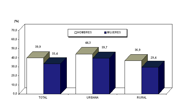 (42,0%) que en la rural (33,1%). La asistencia según sexo