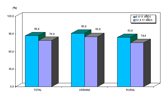 (6 a 11 años), es 86,6% y entre los jóvenes (12