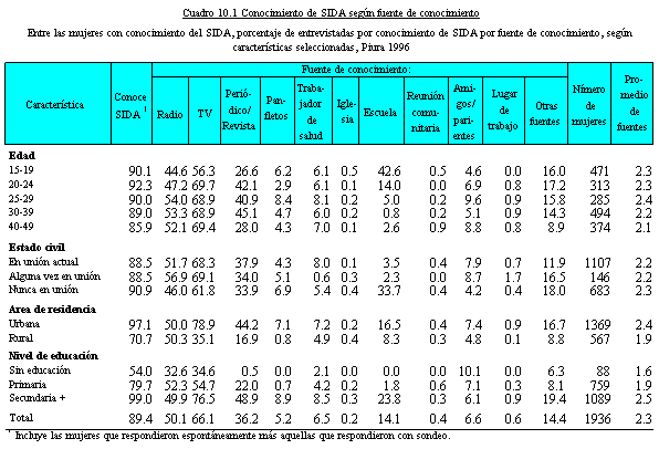 conocer o haber escuchado hablar del SIDA. Dicha proporción