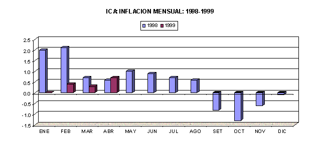 7.9.5 ICA: INDICE DE PRECIOS PROMEDIO MENSUAL AL CONSUMIDOR, POR GRANDES GRUPOS DE CONSUMO 1997 – 99